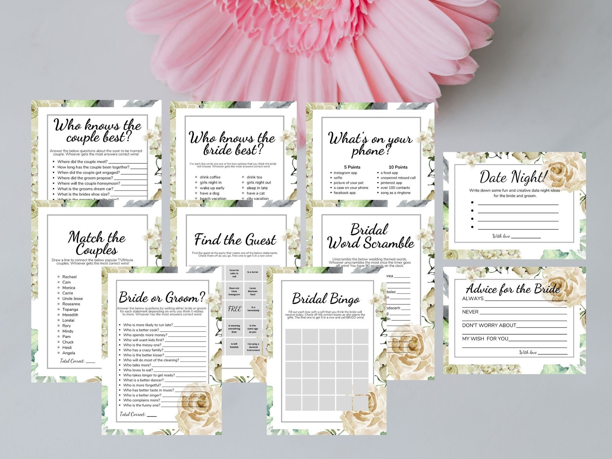 Floral Bridal Shower Games Bundle Botanical Wedding Shower Etsy